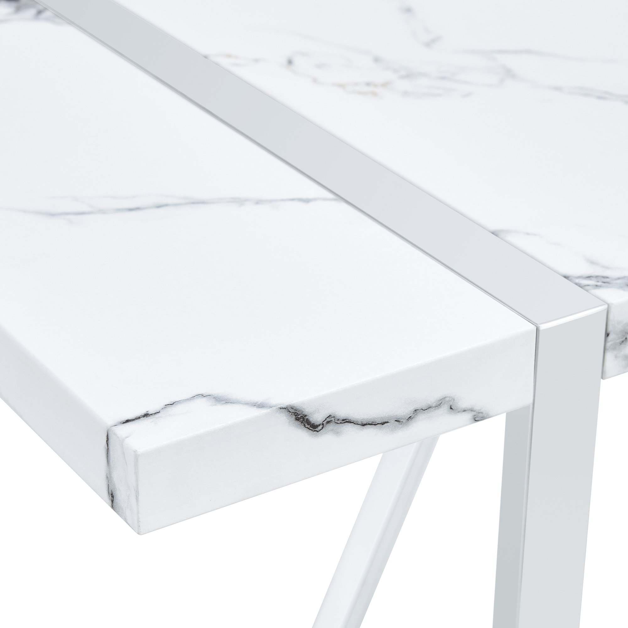 5 piece kitchen dining table set is perfectly for family, modern and elegant style is ideal for diverse rooms , white Large faux marble table top enhances visual attractiveness of this dining table,making it simplistic but elegant..The faux marble table allows you to study, work and have dinner conveniently.
