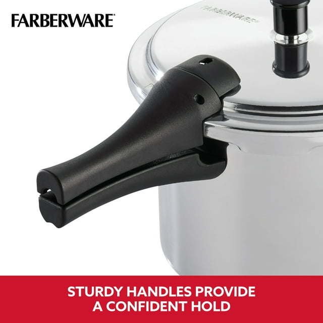 • EASY HANDLING: Sturdy pressure cooker handles lock into place for an airtight seal and provide a comfortable hold for big one-pot recipes