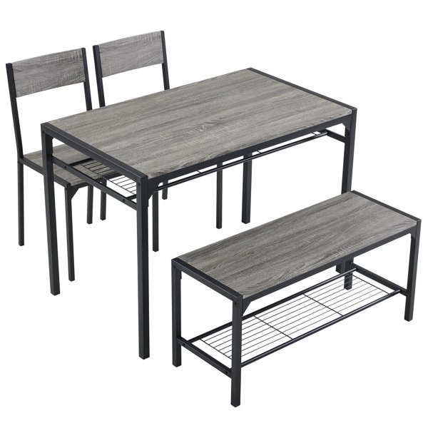 Home > Dining Table Set for 4, Kitchen Table with 2 Chairs and a Bench, 4 Piece Kitchen Table Set for Small Space, Home Kitchen Bar Pub Apartment, Gray
