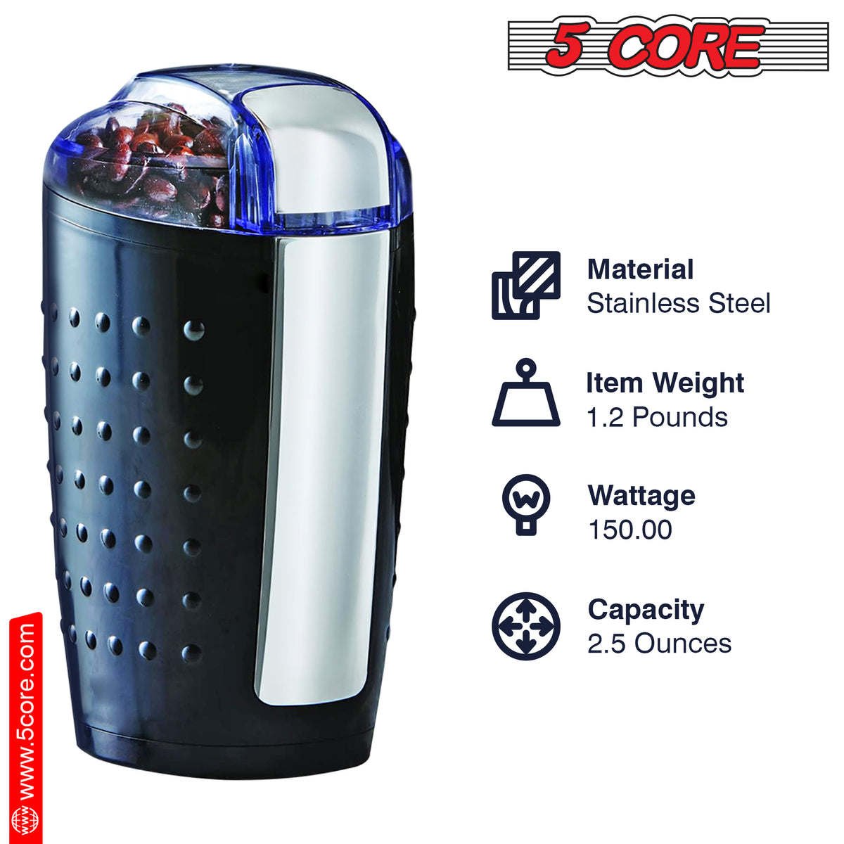Home > 5 Core Coffee Grinder • 85 Gram Or 3 Ounces / 12 Cup Capacity • One-Touch Automatic Electric Bean Spice Grinding Machine • 150W Copper Motor •