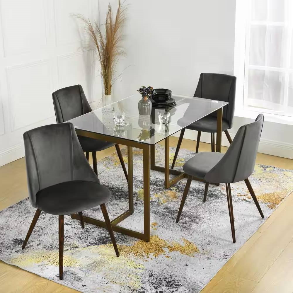 Dive into a dining experience that's as stylish as it is functional. Our Modern 47-inch x 31-inch Tempered Glass Top Dining Table with Gold Metal Frame, measuring a spacious 47x32 in., comfortably seats four and stands strong with a weight capacity of 180 lbs. Its sleek tempered glass top, resistant to both breakage and scratches, is complemented by an elegant gold-finished iron frame, making every meal a glamorous affair. Whether you're hosting in a home kitchen, dining room, or restaurant, its versatile design ensures it fits seamlessly. Enjoy ample legroom thanks to its open tripod construction and rest easy knowing its anti-scratch pads keep your floors pristine. And when it's time to clean up, a simple wipe gets the job done. Plus, with adjustable foot caps and easy assembly, setting up and stability are a breeze. Elevate your dining moments with a table that's both a statement and a staple.