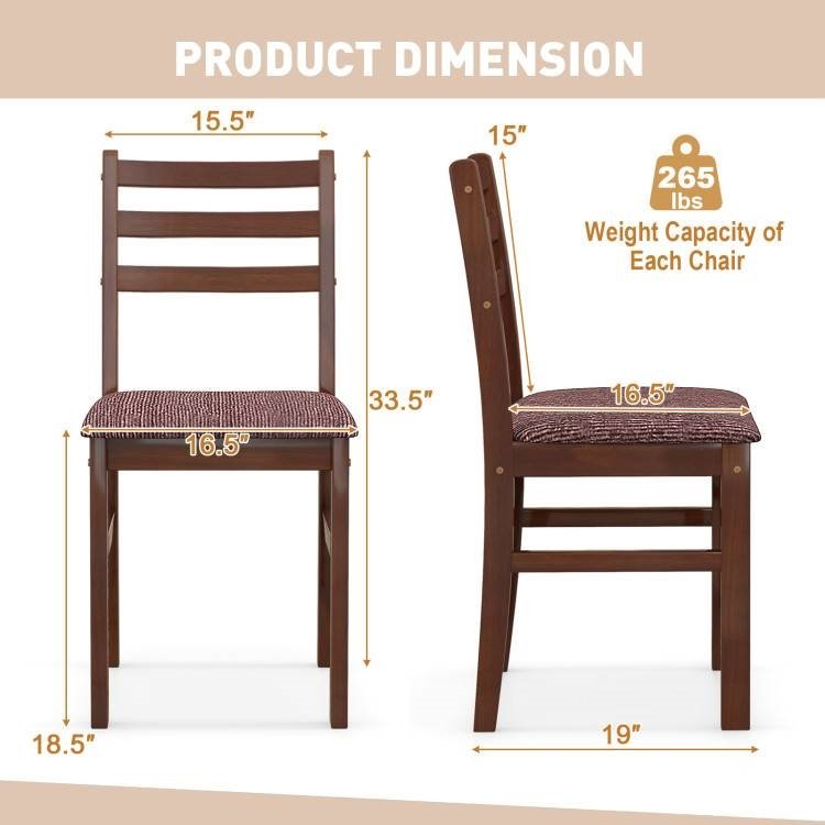 With the stunning combination of exquisite wood grains and retro-textured fabric, this Set of 2 Modern Mid-Century Wood Dining Chairs with Linen Upholstered Seat will definitely impress your guests and inspire long conversations after every meal. This classic and sophisticated set can also enhance the beauty and warmth of your dining room. The upholstered dining chair is designed with an ultra-soft padded seat, which is filled with high-resilient sponges and covered by breathable linen fabric, providing a comfortable sitting experience. Moreover, the curved backrest fits your body curve for better relaxation. The backrest and supporting legs are made from natural solid rubber wood that is characterized by excellent sturdiness and durability, ensuring long service life. Moreover, the reinforced wood bars would also help enhance stability. Each chair can load up to 265 lbs. The dining chair set includes 2 wooden chairs, which are perfect for enjoying happy dining time or eased afternoon teas with your beloved one, and your can purchase more chairs for family gatherings or entertaining friends. The classic and elegant chairs are suitable for various occasions, such as dining rooms, kitchens, restaurants, coffee shops, conference halls, and more. The chair measures 16.5" x 19" x 33.5" (L x W x H) and the seat height from the floor is 18.5". Besides, following the detailed instructions and illustrations, it is easy to connect the parts of the dining chair. And you can clean chairs with a clean cloth to keep them in good condition.